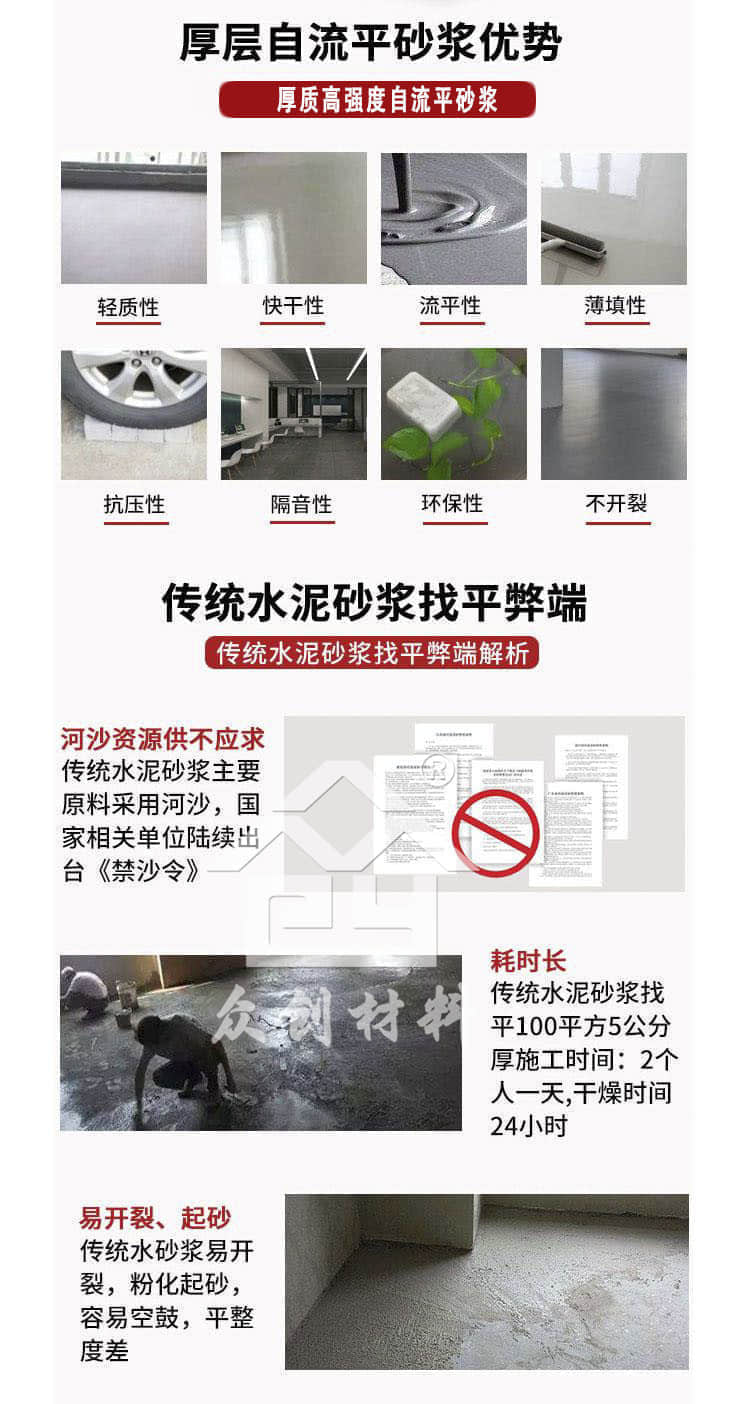 高強(qiáng)度自流平砂漿是一種新型的樓板保溫找平一體系統(tǒng)和地暖回填材料。它以水泥、高強(qiáng)水泥、石膏復(fù)合做為膠凝材料,添加微晶、級配骨料、填充料、可再分散乳膠粉、及各種高分子功能添加劑等混合而成,是一款新拌時流動性好,早期強(qiáng)度高,施工方便,平整度高,不易開裂的新型材料。該材料可同時做為樓板保溫層與面層。